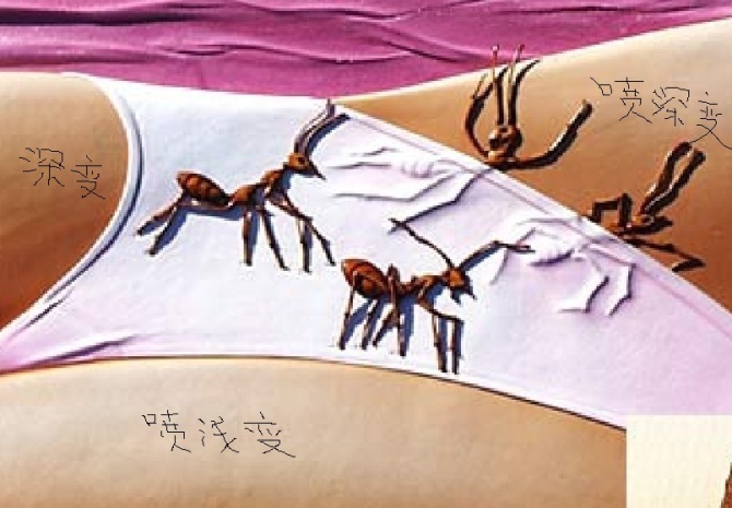 現(xiàn)在大多數(shù)廠家都會使用噴槍著色,皮雕噴涂漸變有2種方式,由淺往深過渡叫淺變。主要是稀釋劑的配比比列了的。由深往淺變叫深變。噴筆由于散色很均勻所以相對比較容易掌握的。但也需要一定的練習了。一般大面積淺變多。深變少,但人物動物肌肉感多為深變,就是用噴筆由最深色處開始往淺色區(qū)輕掃。下面是圖片