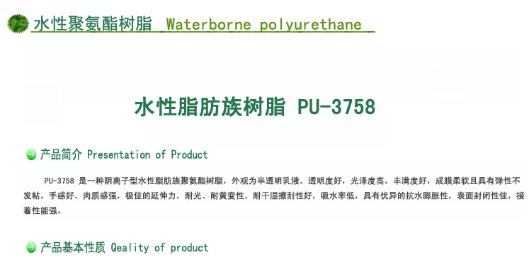 - 產(chǎn)品標(biāo)題:PU-3758 耐黃變紡織物印花涂層 軟皮類(lèi) 服裝涂飾專(zhuān)用樹(shù)脂