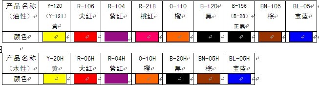 色精可分水性、油性,能與多種溶劑和樹脂混溶,同顏料相比它透明度高、色澤艷麗、著色能力強、分散性好。